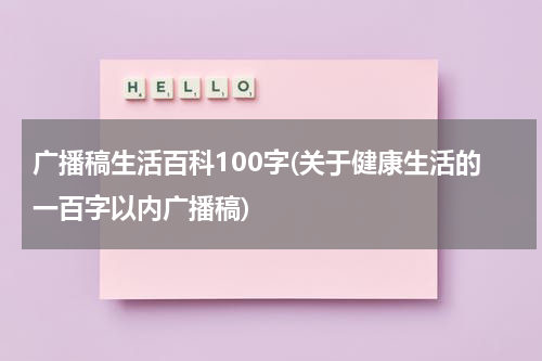 关于健康生活的一百字以内广播稿小常识1、常吃夜宵,会得胃癌,因为胃得不到休息。其中以白棉麻质衣物最有效。染色衣物经过洗涤,往往会发生褪色现象,如果将衣服洗净后,再在加有两杯啤酒的清水中漂洗,褪色部位即可复色。